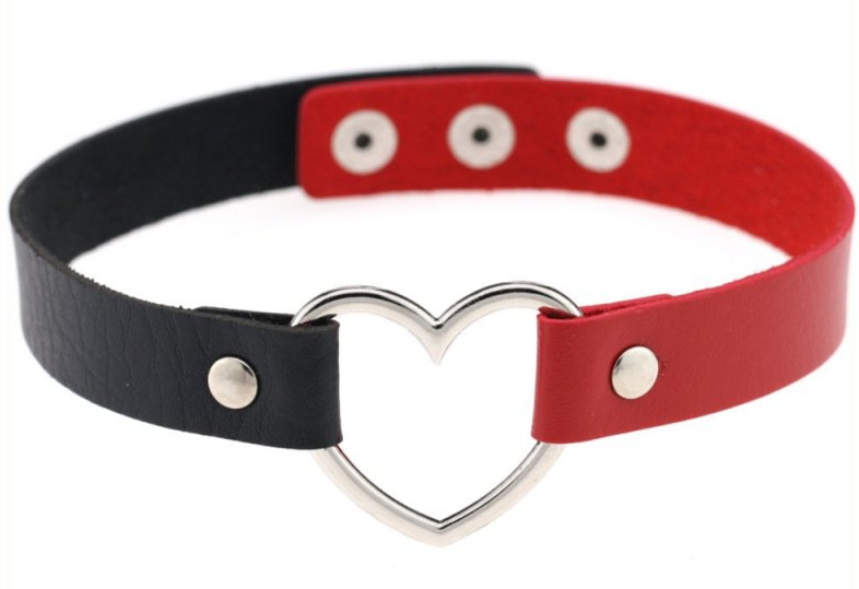 Ce ras de cou est composé d'un coeur en métal et de bandes noire et rouge.Largeur de 18mm Tour de cou de 35 à 39cm. En simili cuir