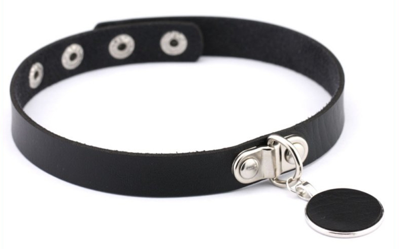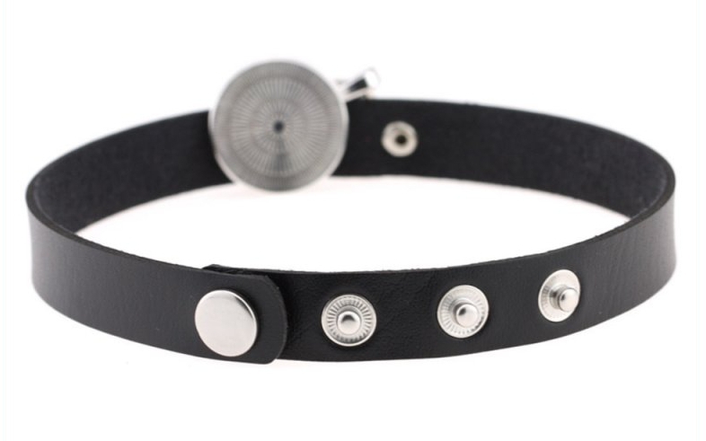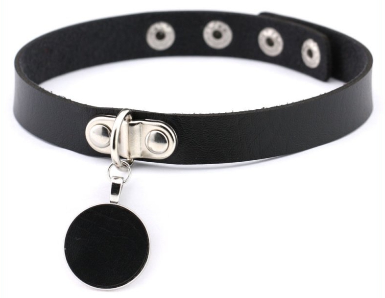 Ce ras de cou noir est composé d'un cercle de 27mm de diamètre et d'un tour de cou allant de 32 à 38cm.En simili (polyuréthane)