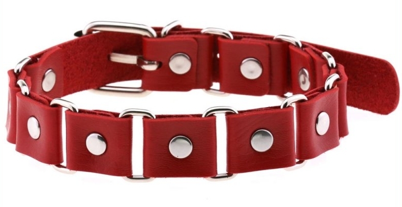 Le ras de cou rouge Stitch est composé de plusieurs maillons carrés avec des rivets métalliques. Largeur de 2cm. Tour de cou de 34 à 42cm. En simili