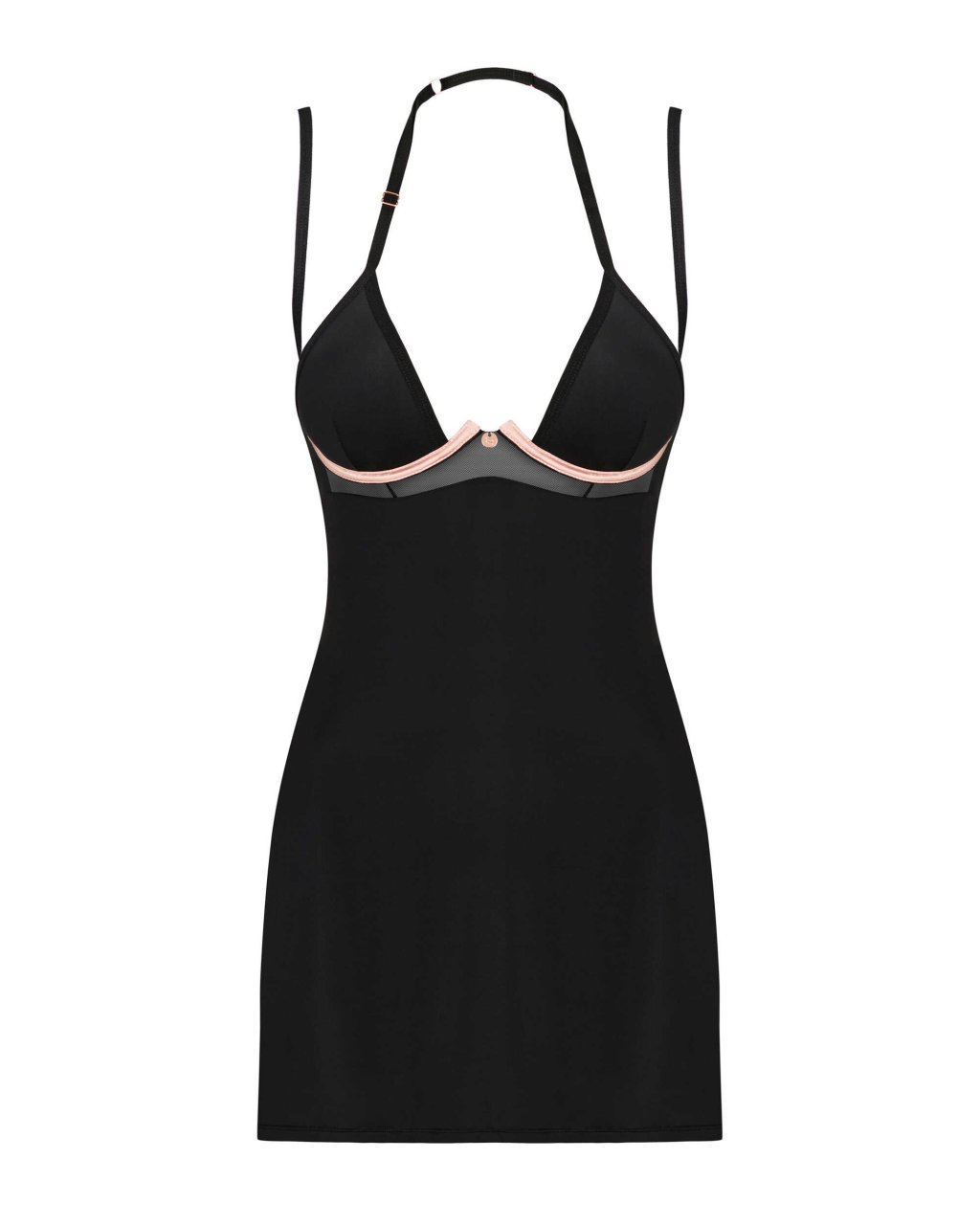 Nuisette et String Selinne Faites sensation avec la nuisette et le string Selinne. Son tissu noir souple mettra en valeur votre beaut� et vous assurera un confort optimal. Des bretelles doubles combin�es � des armatures color�es vous feront vous sentir sp�cial. �tes-vous pr�t pour des moments vraiment inoubliables ? D�couvrez plus de d�tails�:- nuisette et string noirs- armatures distinctives et doubles bretelles - d�tails s�duisants- ajustement parfait gr�ce � la fermeture � plusieurs niveaux et aux bretelles r�glables- sangle licou autour du cou soulevant le buste- accessoires m�talliques en or rose - un ajout int�ressant- haute �lasticit� du tissu - assure un confort de port (85% polyamide, 15% �lasthanne)