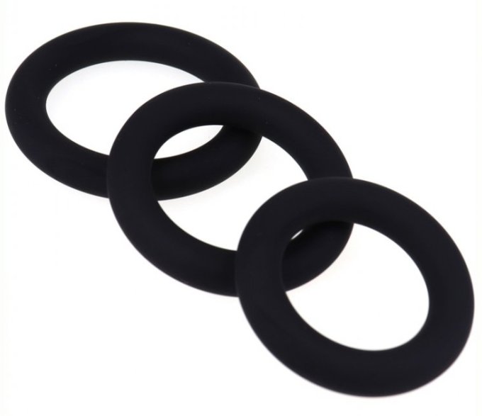 Ce set est composé de 3 cockrings en silicone avec des diamètres de serrage de 30mm, 35mm et 40mm.Épaisseur de 8mm. Idéal pour placer à la base du pénis ou au dessus des bourses.Ils renforcent l'érection. Matière silicone légèrement étirable