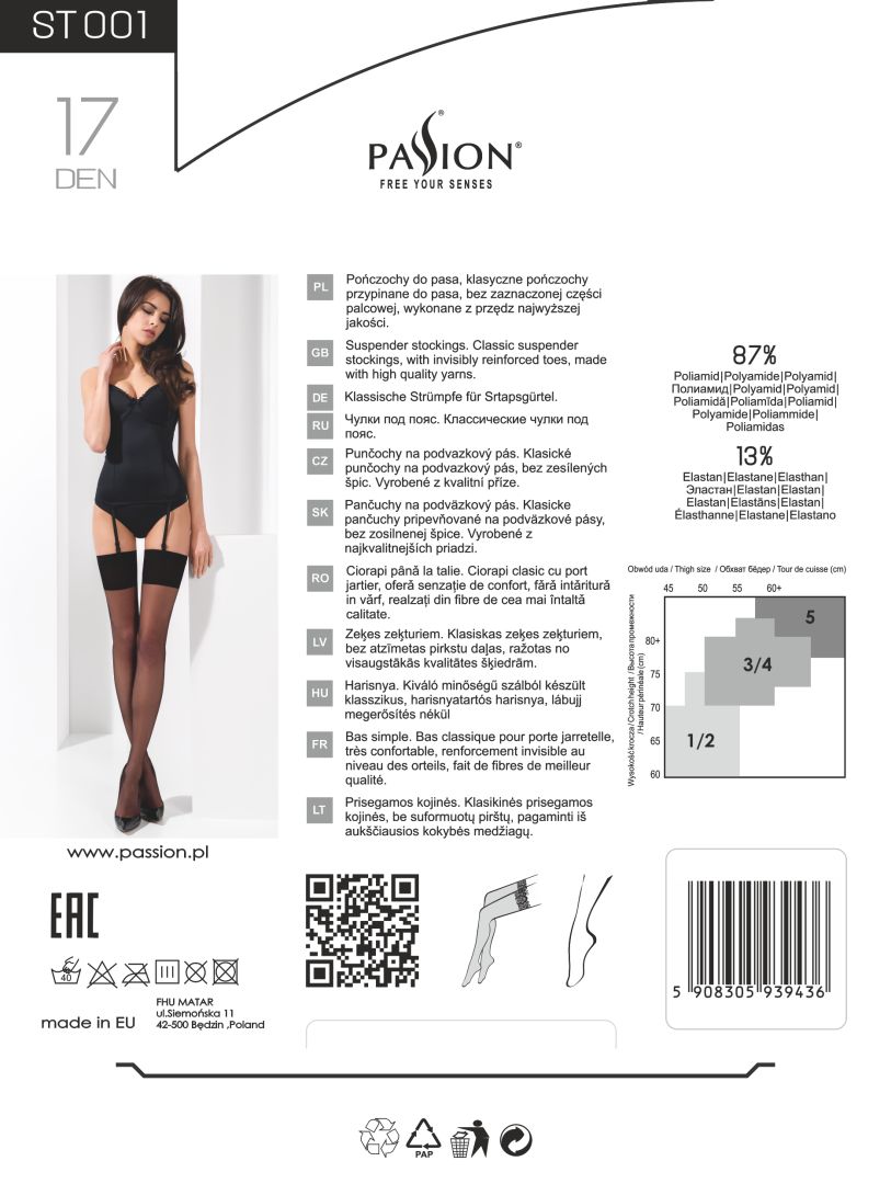 Un mod�le classique de bas noirs�� associer avec toutes vos gu�pi�res et ensembles de lingerie 3 pi�ces.Les bas�ST001 de la marque Passion de 17 deniers vous offrent�finesse et r�sistance avec leur pointe des pieds renforc�e.Composition : 87%� polyamide, 13% �lasthanne�