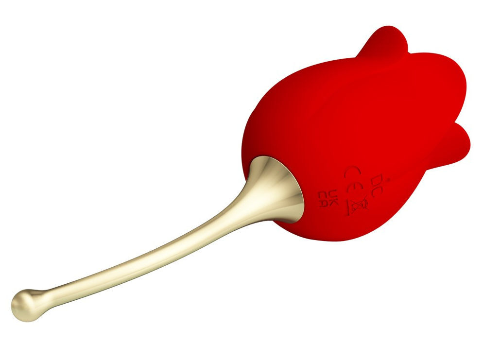 Stimulateur anulingus avec 12 modes de léchage et 12 modes de vibrations.Longueur totale de 14 cm et largeur de la rose de 5 cm.En silicone.