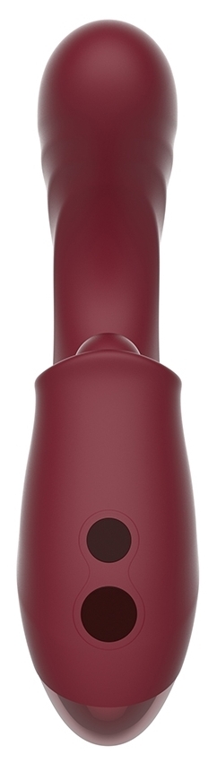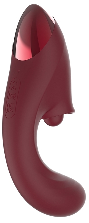 Stimulateur de clitoris avec 10 modes de vibrations, 5 modes de tapotements et 5 modes d'aspirations. 2 moteurs indépendants. Étanche Partie insérable pour le point G. Recharge par USB. Dimensions : Longueur insérable de 12 cm. Largeur de 3.5 cm. En silic