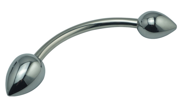 Ce stimulateur de prostate en métal Double Head est conçu avec une forme courbée.Il possède 3 embouts amovibles permettant de varier les sensations lors de l'insertion.Les embouts sont de 4 x 2.7cm lisse, 5 x 3.4cm lisse et 6 x 4.1cm lisse. La partie cent
