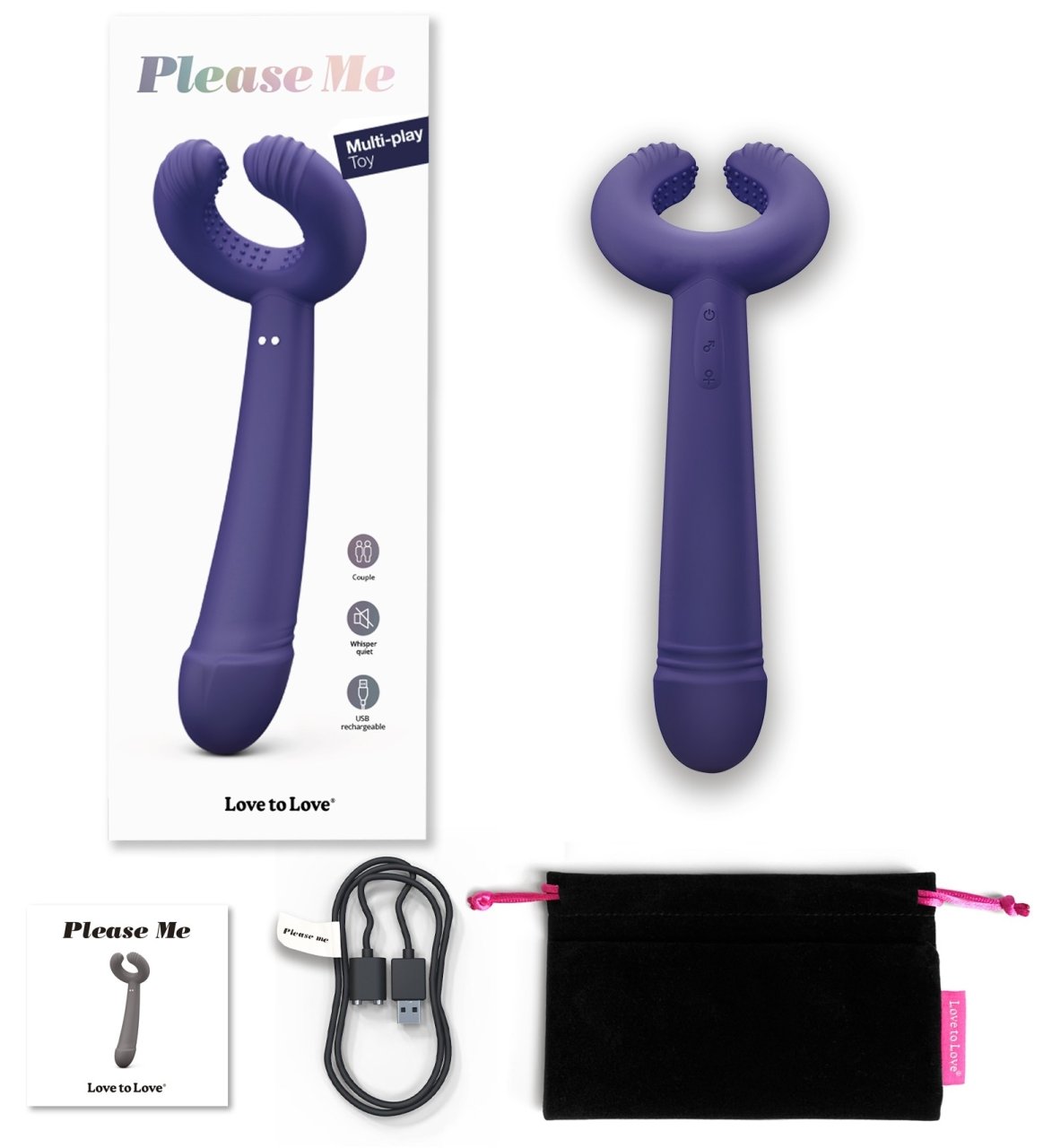 Le stimulateur Please Me de la marque Love To Love est réalisé avec un vibro de 13 x 3.6cm.La partie haute est courbée et souple pour glisser le long des zones intimes. Sextoy double usage ! Il dispose de 8 modes de vibrations (moteurs indépendants).