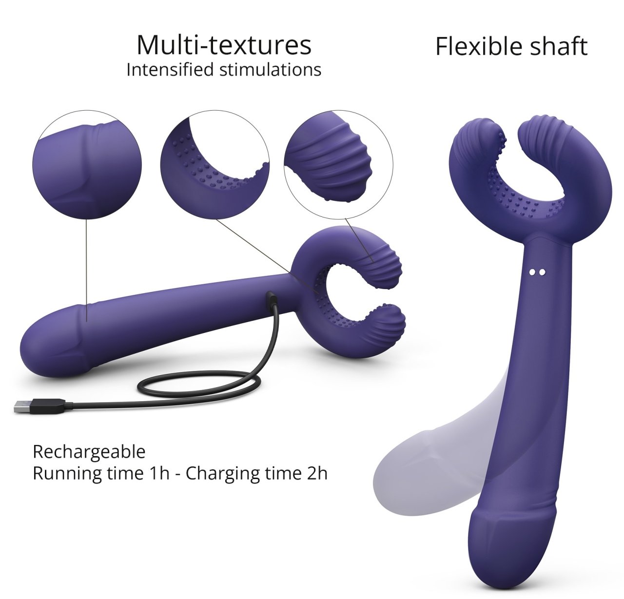 Caractéristiques : Matière Silicone Batterie Lithium - recharge USB Autonomie 1h Temps de charge 2h. Conseils d'utilisation : Nettoyer après chaque utilisation Utiliser un lubrifiant à base d'eau Conserver dans un endroit propre, sec et à l'abri de la chaleur Éviter le contact prolongé avec un autre objet