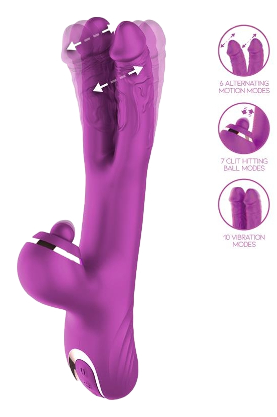 Vibro rabbit avec 10 vibrations, 6 mouvements de doigts et 7 tapotements.Longueur insérable de 12 cm et largeur de 3.3 à 3.7 cm.En silicone, étanche et rechargeable.