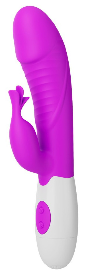 Vibro rabbit d'une longueur insérable de 11 cm et largeur de 2.8 à 3.7 cm.30 modes de vibrationsEn silicone violet, fonctionne à piles.