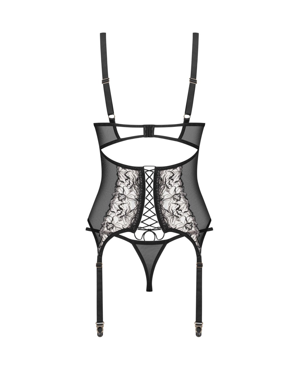 Vila Blanes corset & stringUn corset � empi�cements floraux. Cette lingerie surprend par son tissu transparent et ses jarretelles ind�tachables. La mati�re douce �pouse d�licatement la taille tout en mettant l?accent sur le charme f�minin. C?est une option pour les femmes confiantes qui savent ce qu?elles veulent. String et corset avec un embellissement floralla�age sur le dosbonnets � armaturesFermeture � crochet et � oeil r�glablebretelles r�glablesmat�riel transparentPorte-jarretelles r�glables et non d�tachablescorset (94% polyamide, 6% �lasthanne); (88% polyamide, 12% �lasthanne; 100% polyester); string (94% polyamide, 6% �lasthanne) con�u dans l?UEne contient pas de nickel